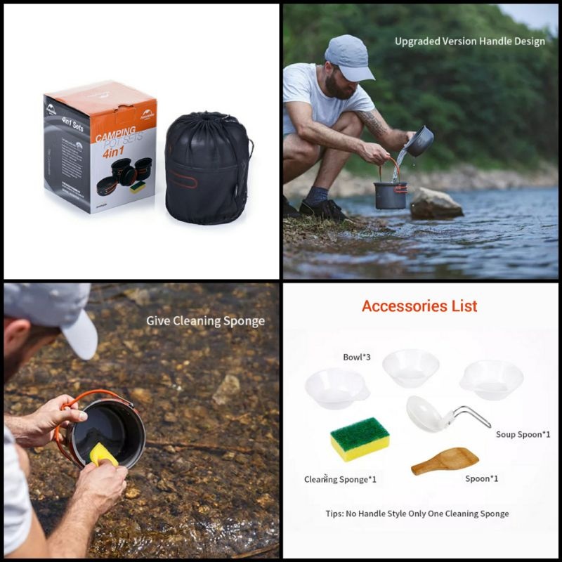 Naturehike NH18T018-G Camping cooking set 4 pcs alat masak camping piknik