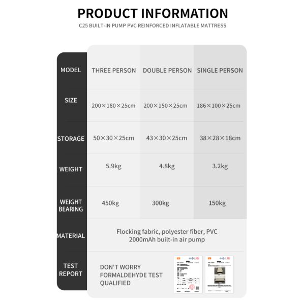 Material : flocking fabric, polyester fiber,PVC 2000mAh built-in air pump