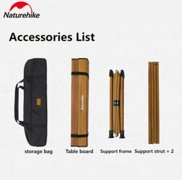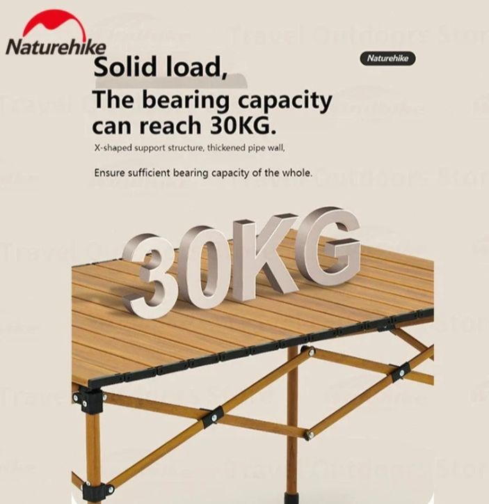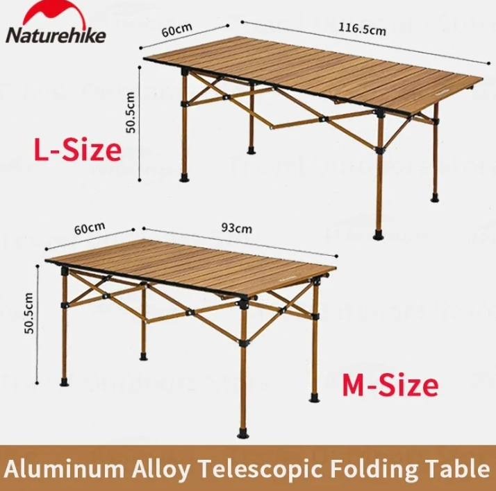 Meja Lipat dari Naturehike dengan susunan kerangka aluminium alloy yang dapat menahan beban hingga max 30 kg. Cara pemasangan yang mudah dan portabel sehingga mudah disimpan, dan dibawa kemana saja