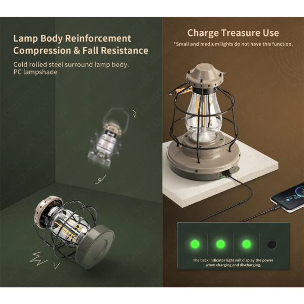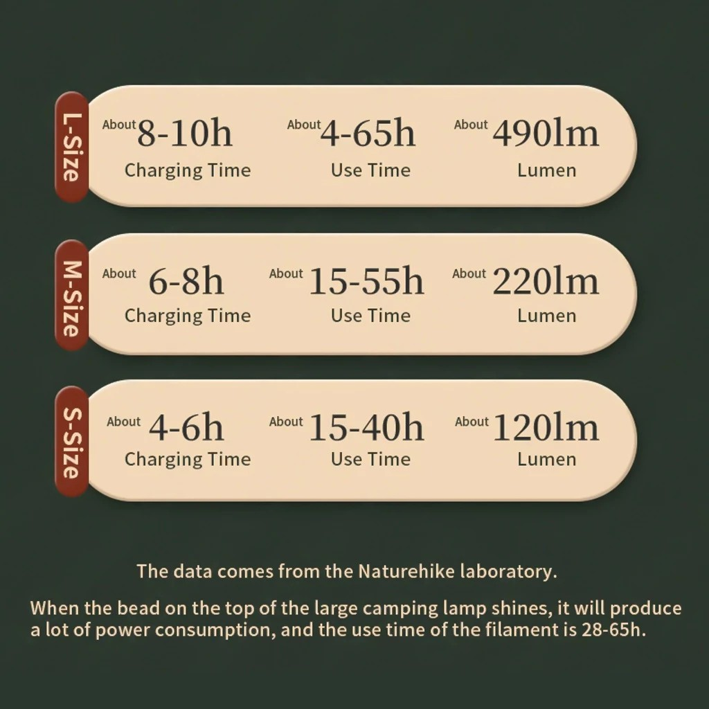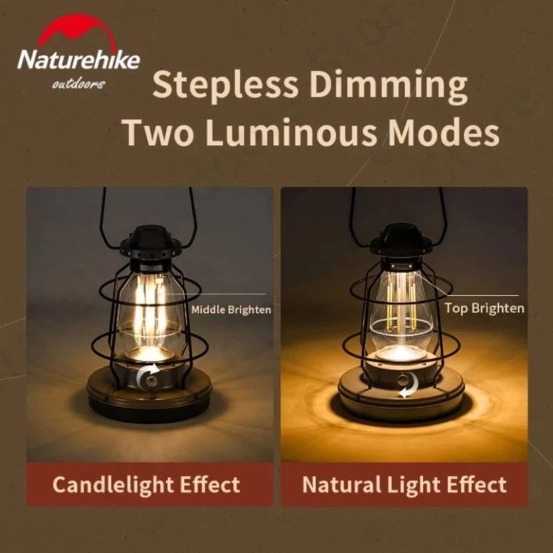 Lampu camping dari Naturehike dengan design yang retro dan unik namun sudah di dukung oleh fitur-fitur yang modern. Design minimalis dan elegant membuat suasana camping lebih estetik. Tingkat waterproof IPX4 dan battery life yang tahan lama, mendukung kegiatan outdoor anda