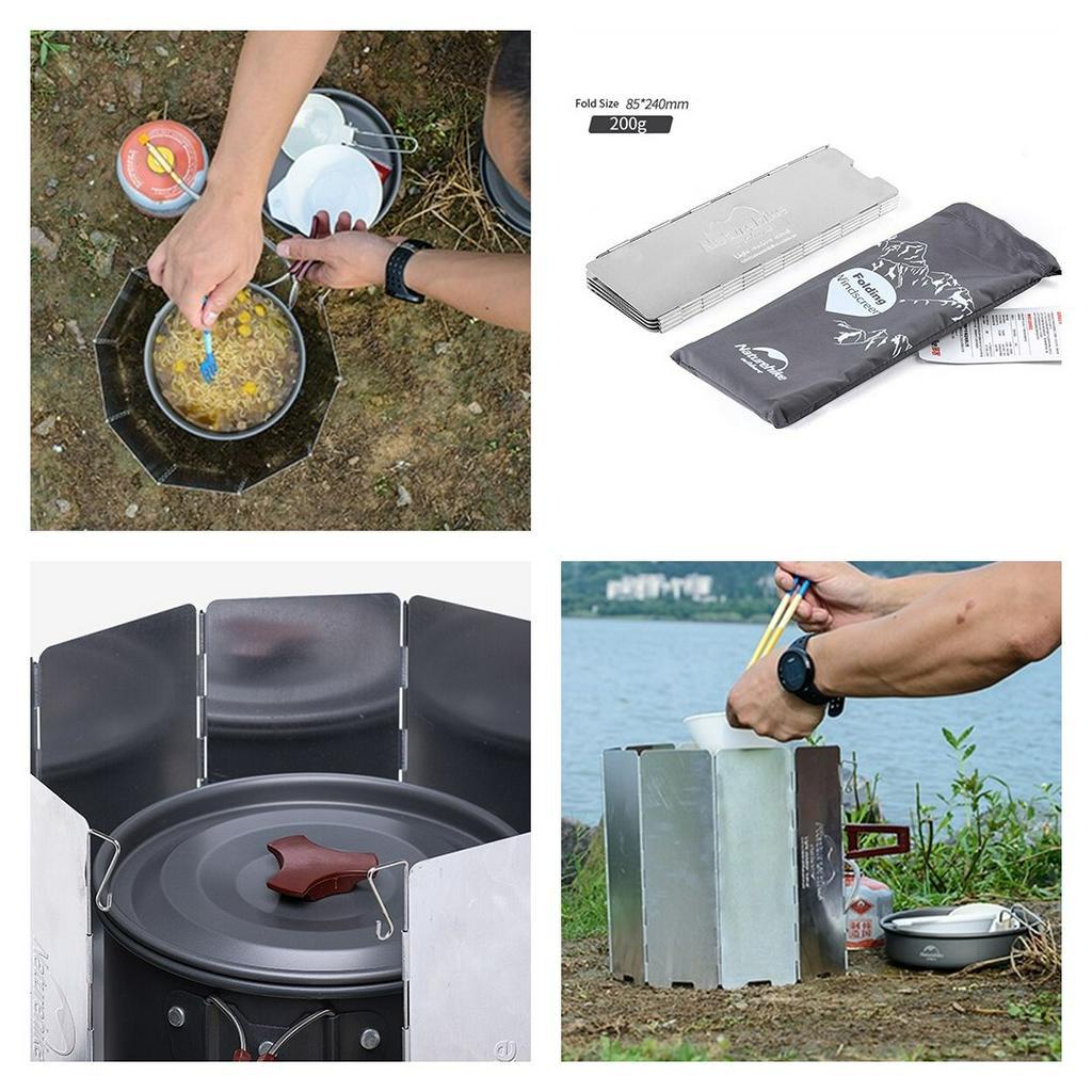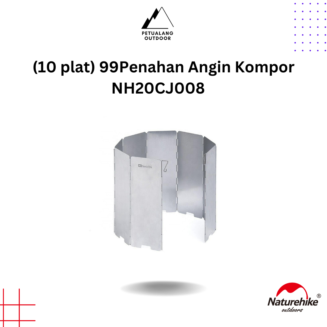 Penahan angin dari Naturehike yang berfungsi untuk menjaga api dari kompor camping tetap menyala saat memasak di daerah yang berangin. Engsel yang kokoh, stabil, dan dapat disesuaikan dengan kebutuhan.