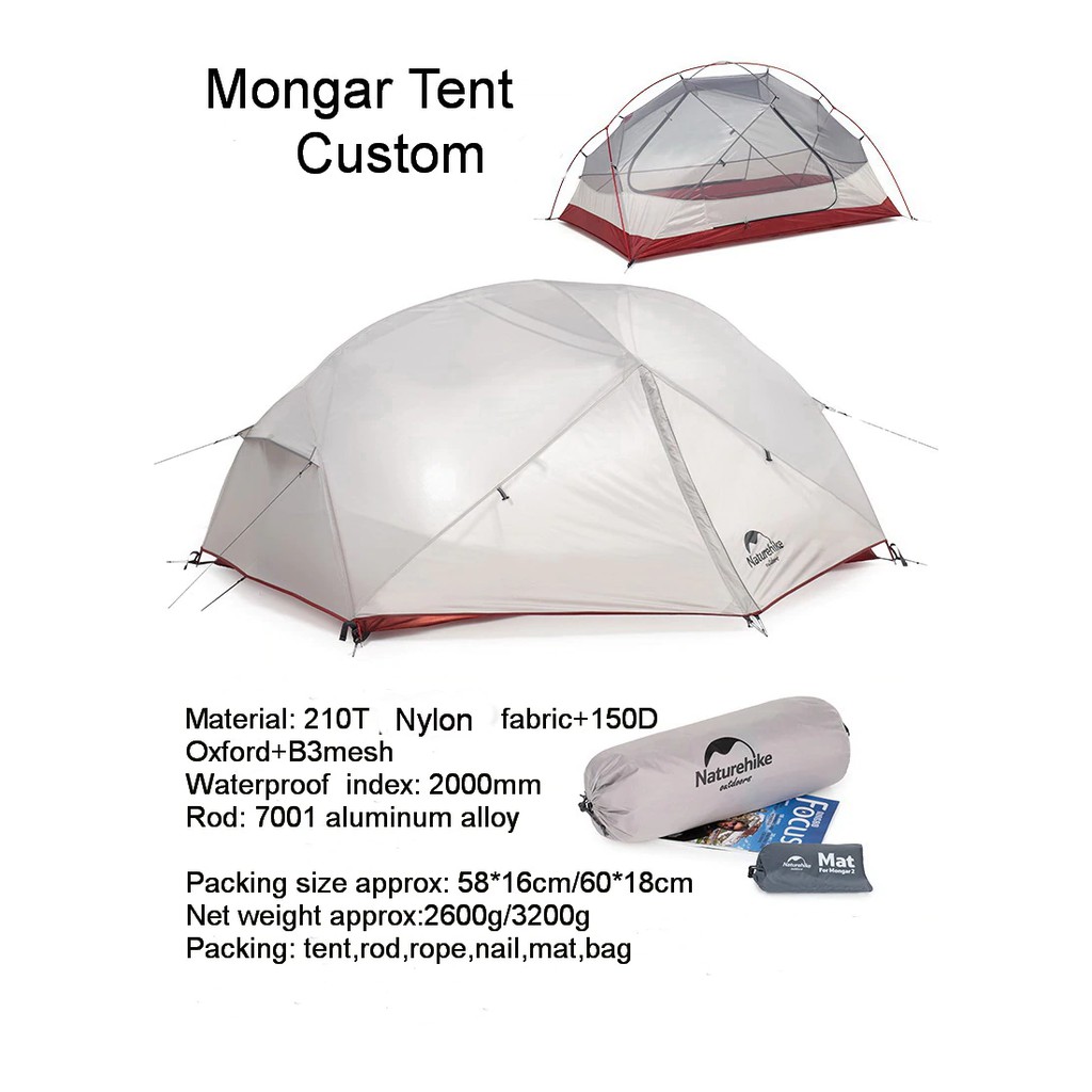 Tenda Naturehike Mongar 2 20D NH17T007-M (Size M, Warna Abu-abu)